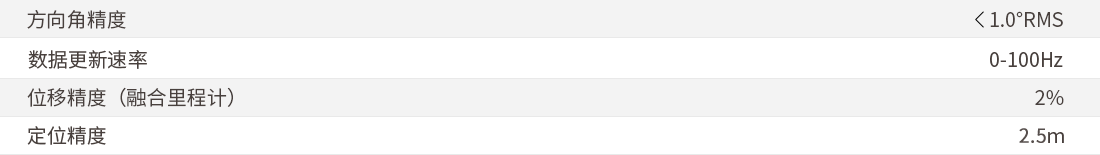 可以根据车辆输出里程计数据与INS的融合,达到2%精度的位移与速度的测量,实现高精度、长时间的位置数据测量。